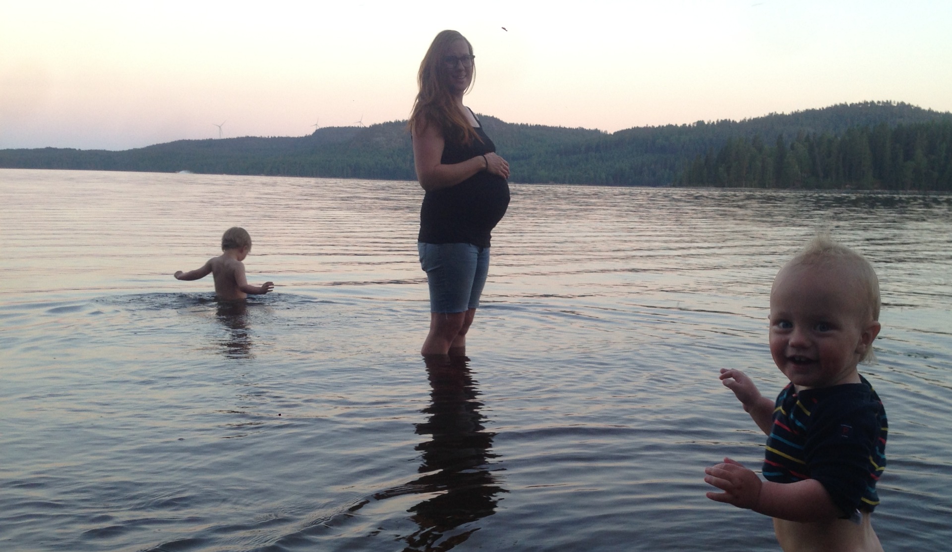 Kaffet dricks upp. Skorna på. Selen på. Liten sparkar i magen. Andra liten somnar på magen. Ryggsäcken på. Brummande buss. Skumpande väg. Hemma igen. Hemma med er. Snart kommer pappa hem. Snart börjar en ny dag. Kanske går vi ut i skogen då, eller ner till sjön? Eller så stannar vi inne hela dagen och myser. Vi får se.