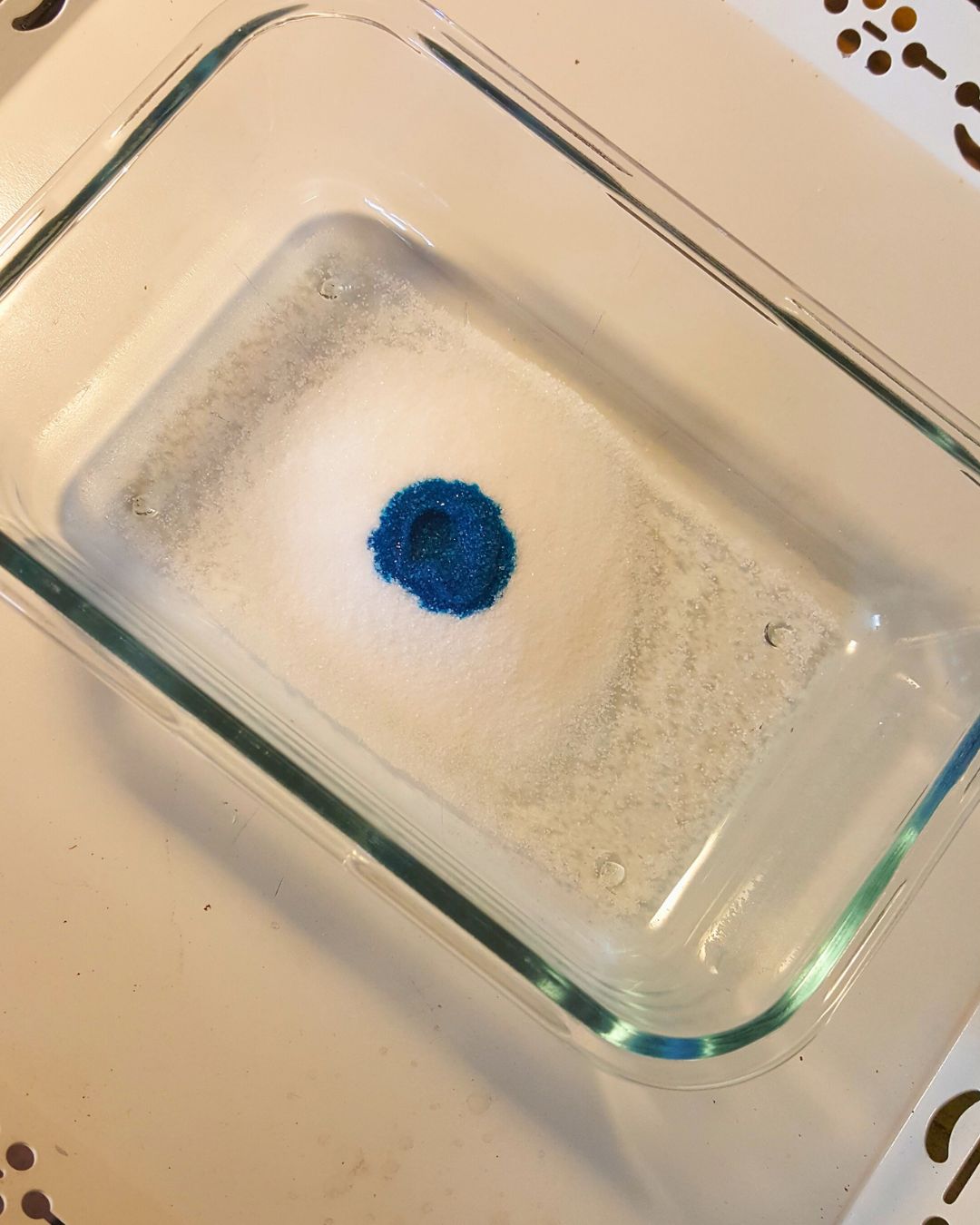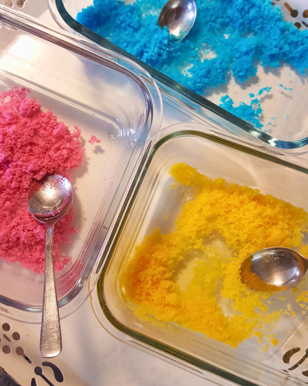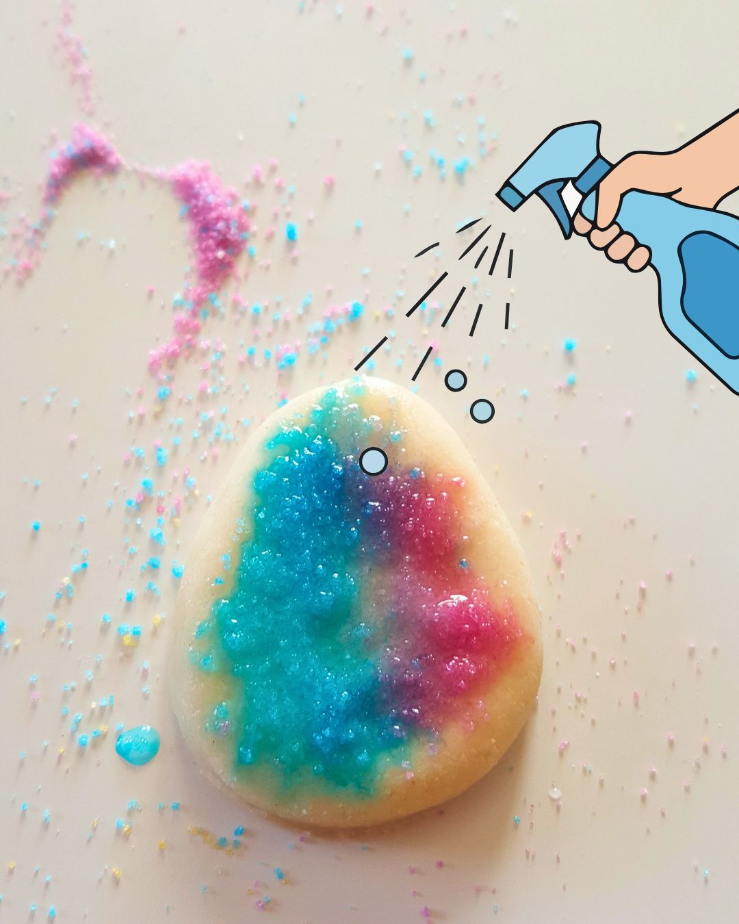 5. Strössla över det färgade saltet i olika kombinationer och mönster.