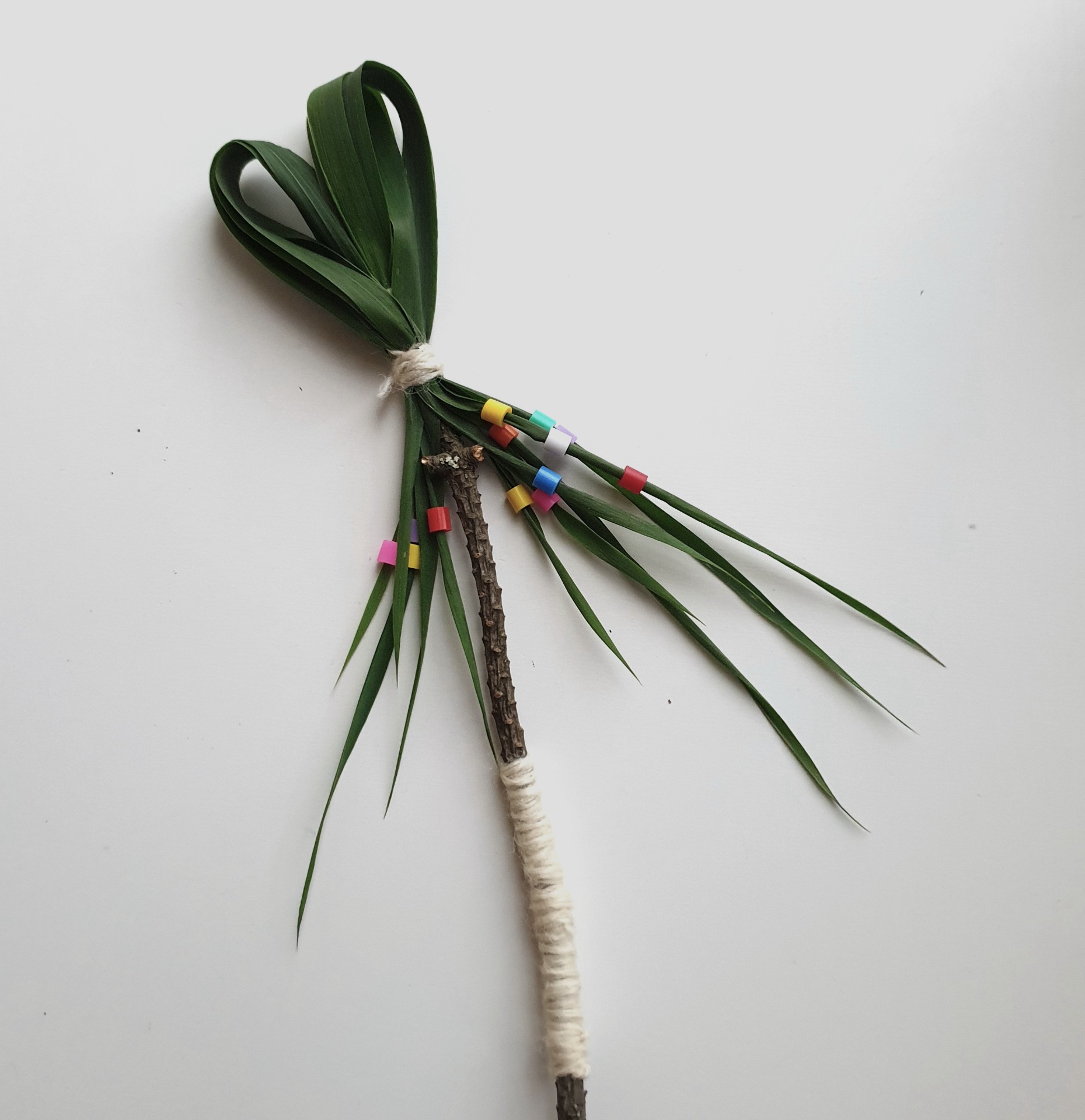 En pinne, några långa grässtrån och lite garn. Mer än så behövs egentligen inte för att skapa något som kan bli en trollstav, en sagostav, ett naturspö eller kanske något helt annat i barnens lek.