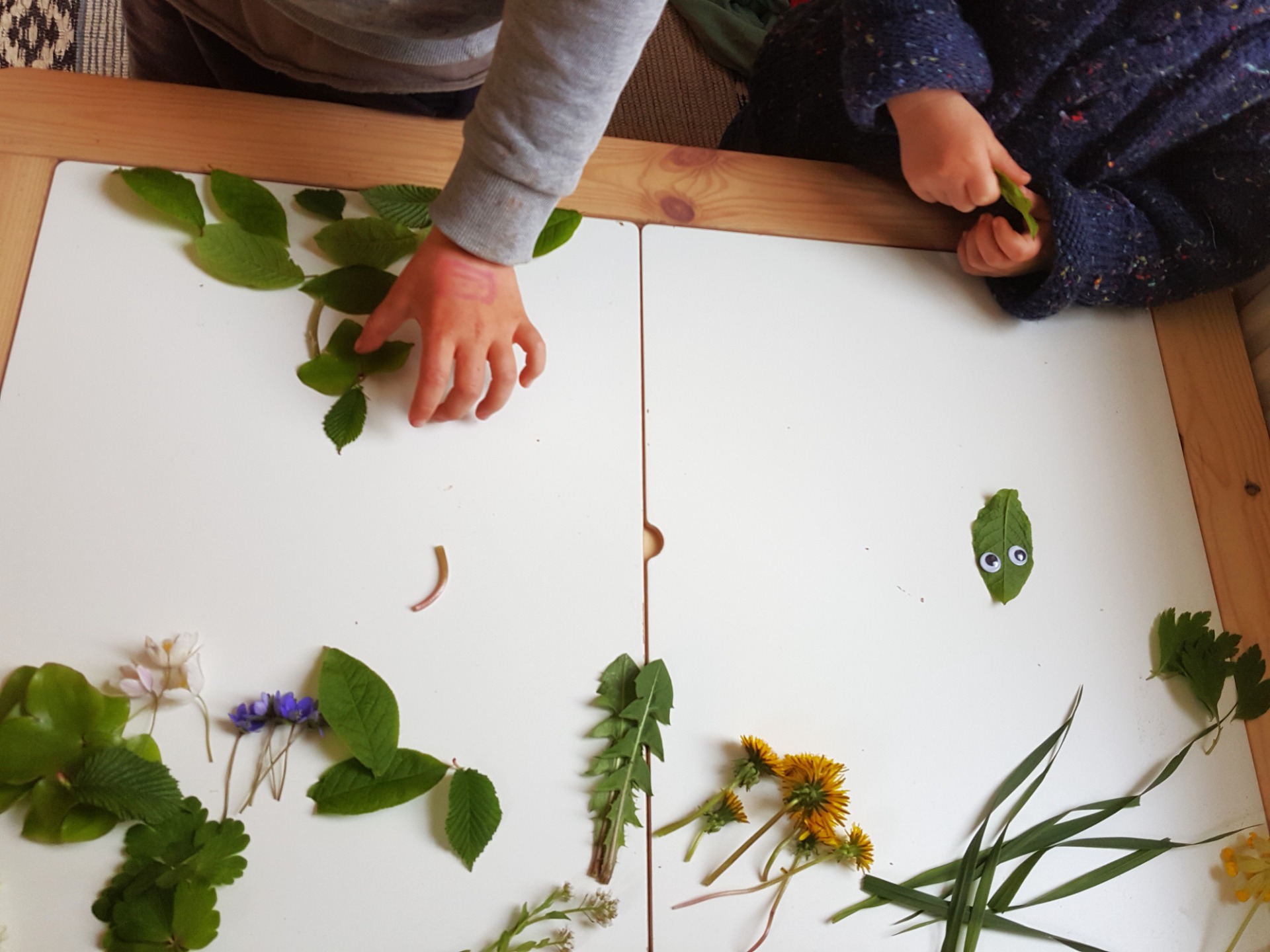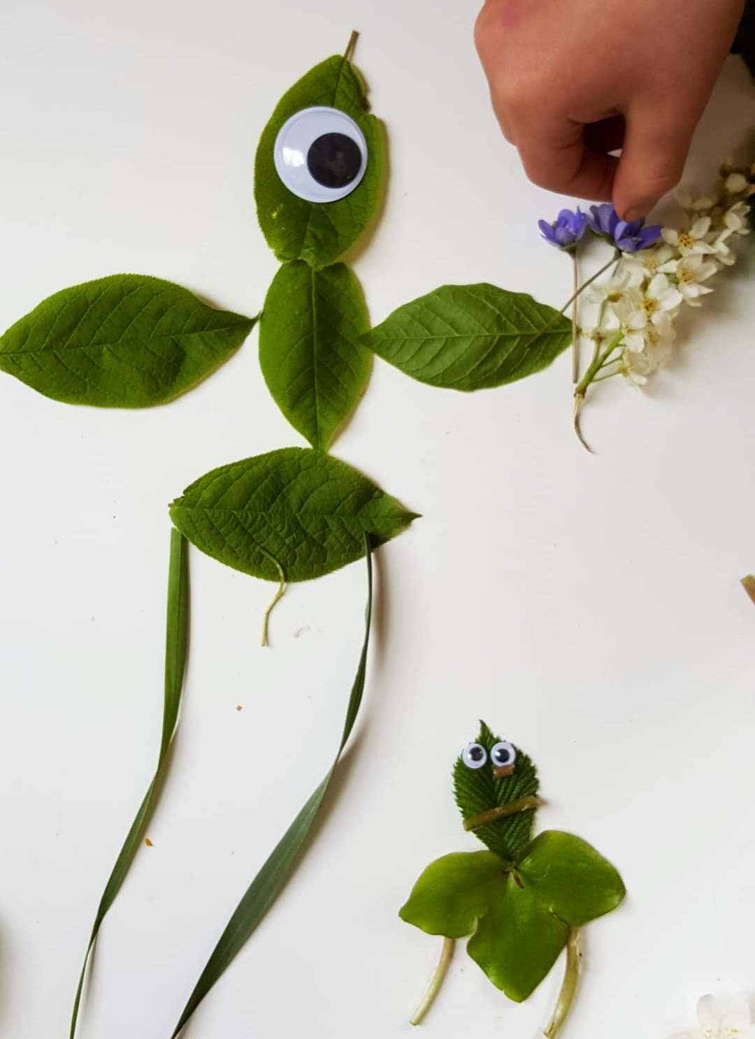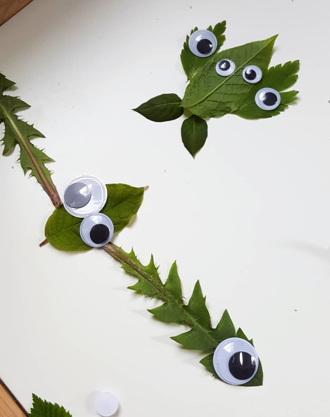 Ett blad kan bli ett ansikte eller en kropp. Mindre blad kan bli armar, ben eller vingar. Med några rörliga ögon blir det snabbt små figurer med olika uttryck. Aktiviteten är lätt att anpassa efter ålder och passar både ute och inne.