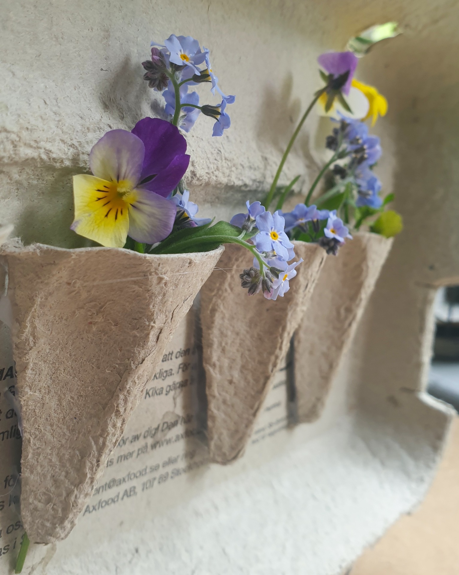Det här är ett enkelt återbrukspyssel där en äggkartong får bli en liten blomsterhylla för vilda blommor. Den går att hänga upp ute eller inne och passar fint som sommarpyssel när barnen vill plocka små buketter och göra något av dem. Först får man skapa själva hyllan, och sedan kan man fylla den med det man hittar ute: maskrosor, förgätmigej,...