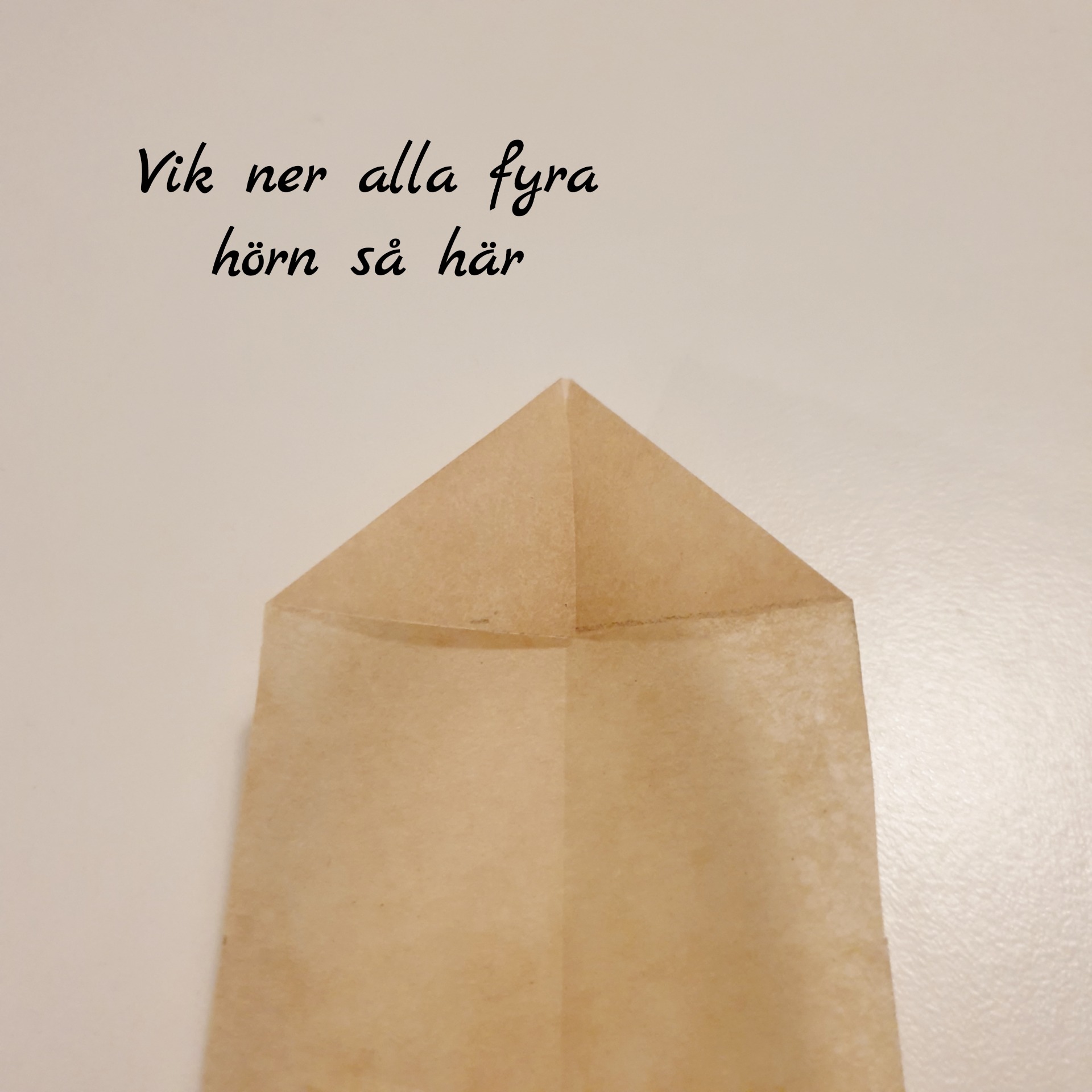 3. Veckla ut igen och vik sedan ner alla fyra hörn mot den vikta mittlinjen.
