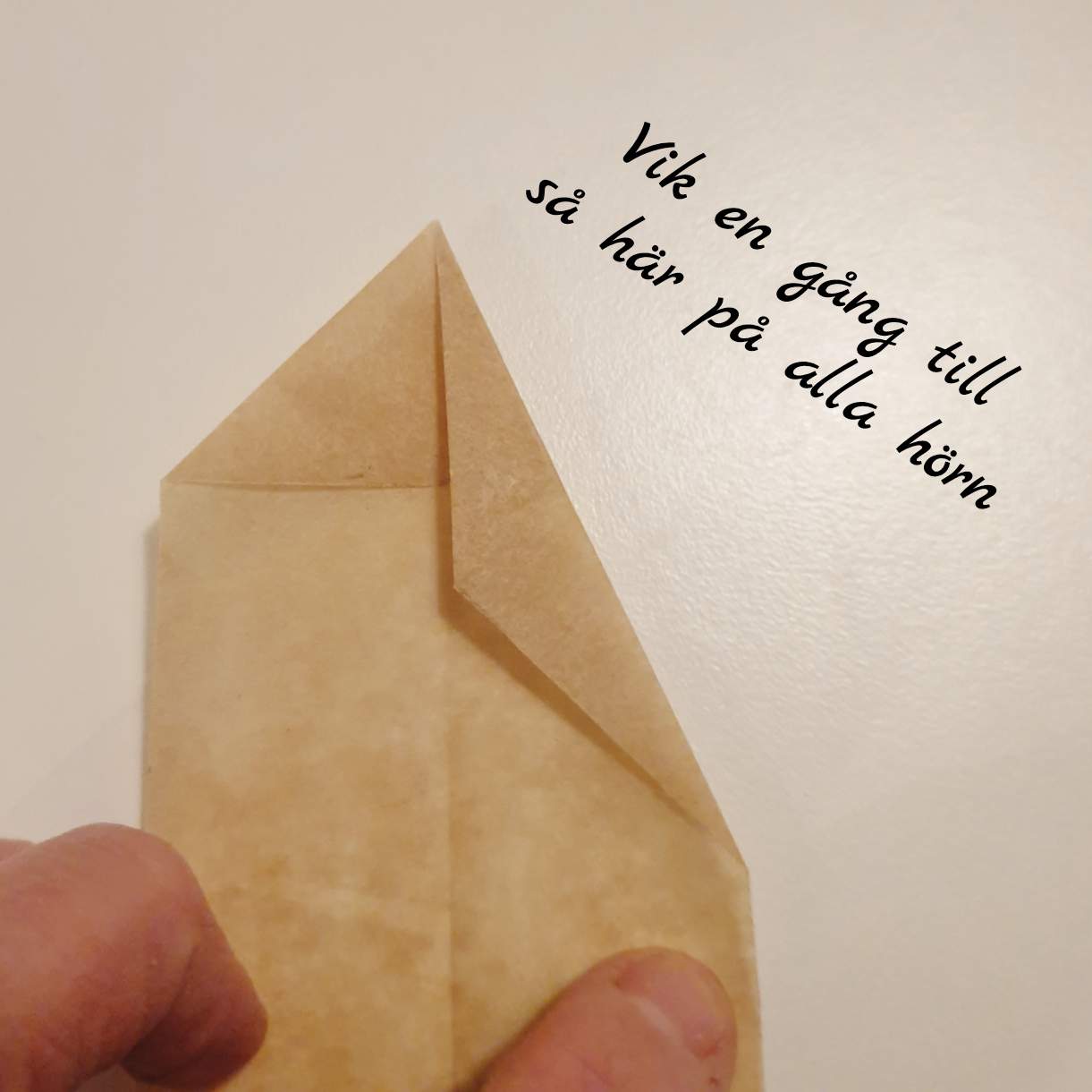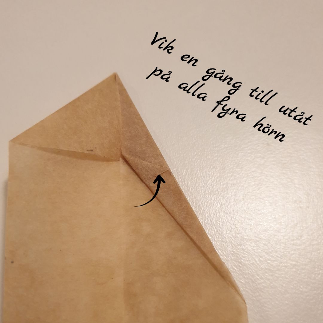 4. Vik ner alla fyra hörn en gång till mot mittlinjen, som på bilden här ovan.