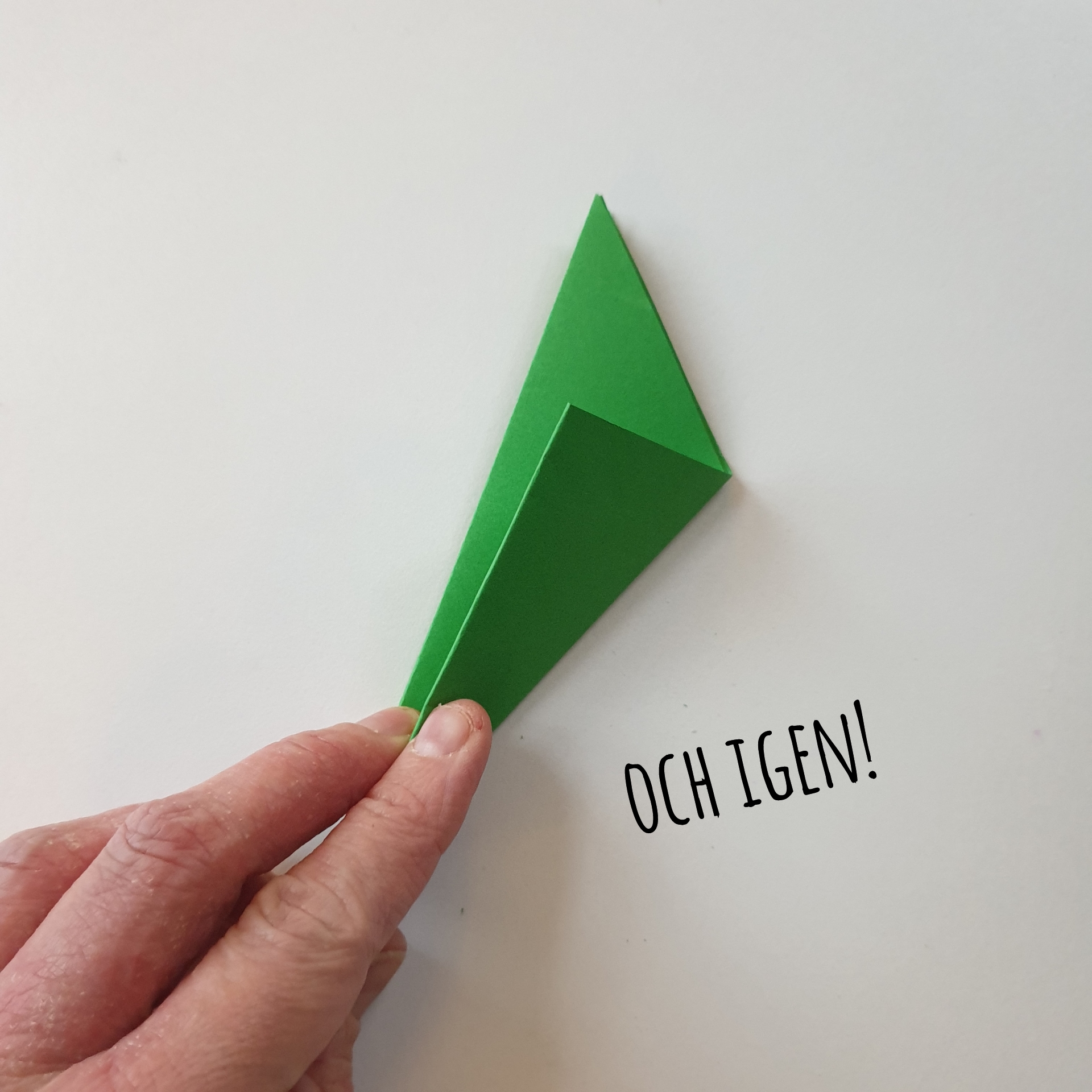 Vik till en kvadrat – Vik ena hörnet av pappret så att en triangel bildas.